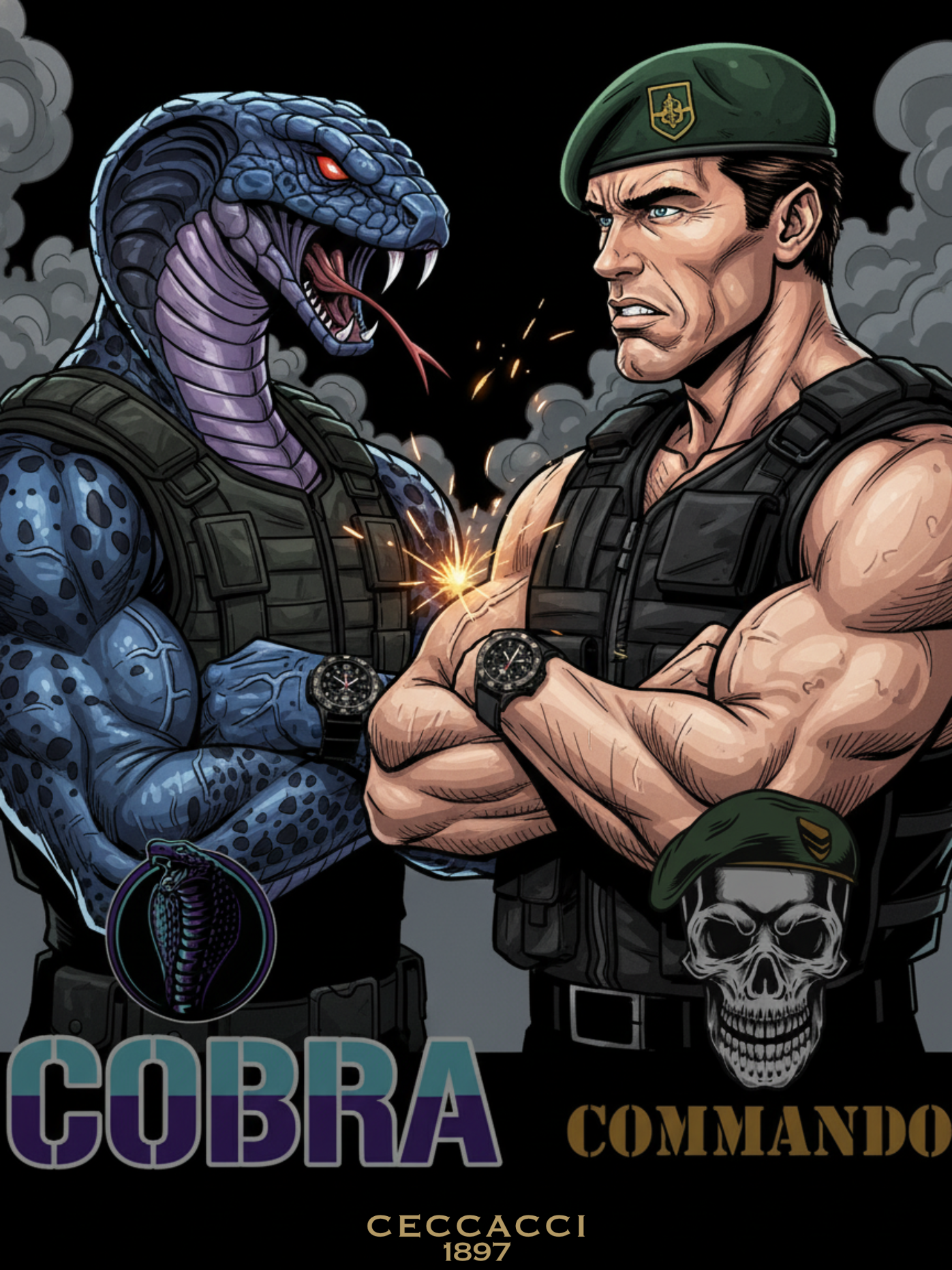 Born for the toughest missions, the Hurricane Cobra is the kind of gear every battle-hardened veteran dreams of strapping on. It channels the raw adrenaline of the greatest action cult classics, when every second counted between victory and defeat. Engineered with Professional Dual Straps – rugged Nylon for endurance in the field and premium Rubber for unmatched comfort under fire – it adapts like a true special ops asset. Each Cobra comes in an exclusive limited-edition case, the kind of kit worthy of a classified drop. Tough as an armored vehicle, precise as a sniper’s shot, and forged with the fearless style of a cinematic hero, the Cobra isn’t just a watch – it’s your mission partner, from hostile jungle warfare to neon-lit urban battlegrounds.