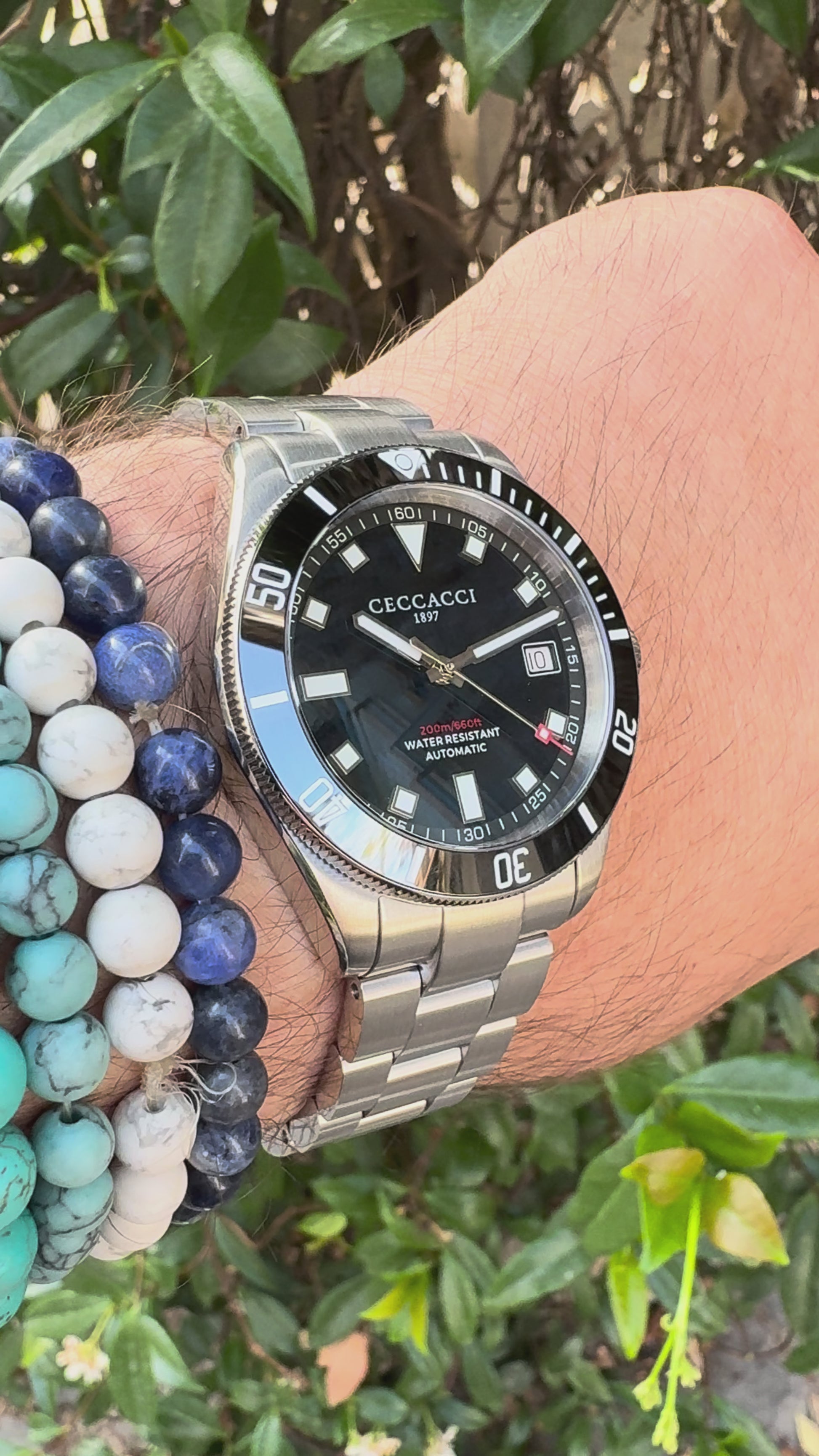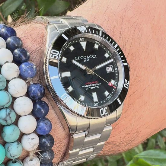 The SCUBA series watch stands as a refined expression of technical mastery and aesthetic distinction, featuring a sleek ceramic bezel and a solid stainless steel bracelet that together convey both strength and sophistication. Engineered to accompany every aquatic adventure with unwavering reliability, it thrives where precision and endurance are essential, moving effortlessly from open seas to refined coastal settings. Free from the need for comparison, it asserts its presence through a rigorously unique design language, where bold character meets elegant restraint, offering not merely performance in water, but an unmistakable statement of style above it.