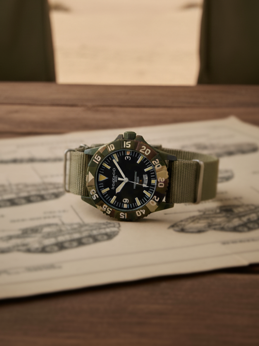 The Exilium collection embodies the strength of those cast into the unknown: far from comfort, surrounded by hostile environments, yet driven by resilience. Each timepiece is crafted with military-grade materials, shockproof, waterproof, and engineered for extreme conditions. The design merges tactical minimalism with functional elegance, expressing a pure survival aesthetic. Exilium is more than a watch: it is a silent companion, ready for every mission.