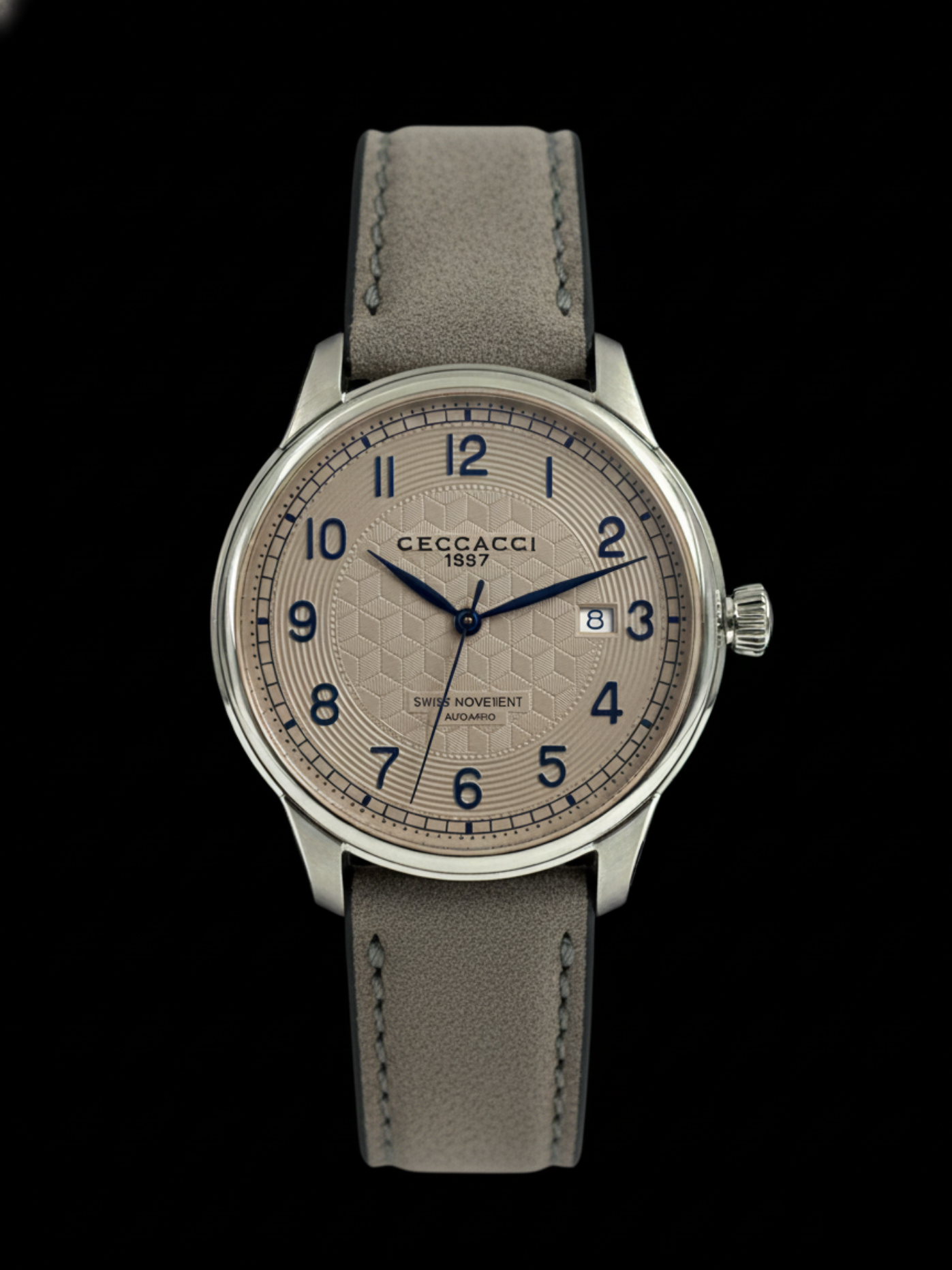 The Prestige collection embodies elegance and sophistication. Its hand-crafted Guilloché dial is enclosed in a 40.5 mm stainless steel 316L case with a transparent back showcasing the Swiss movement. Designed for those who seek a distinctive and reliable timepiece, it is perfect for any occasion where style meets precision. The genuine leather strap, hand-tanned by Italian artisans, completes the watch with a timeless touch of class.